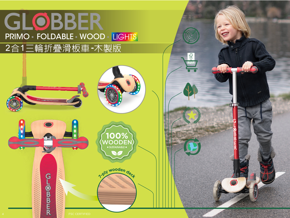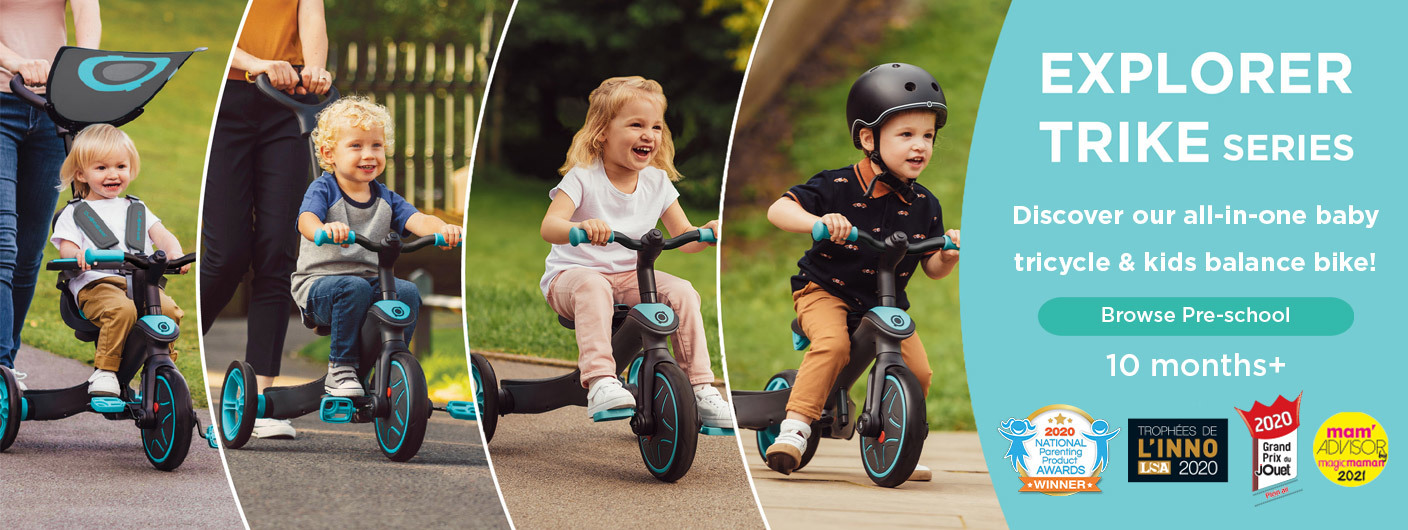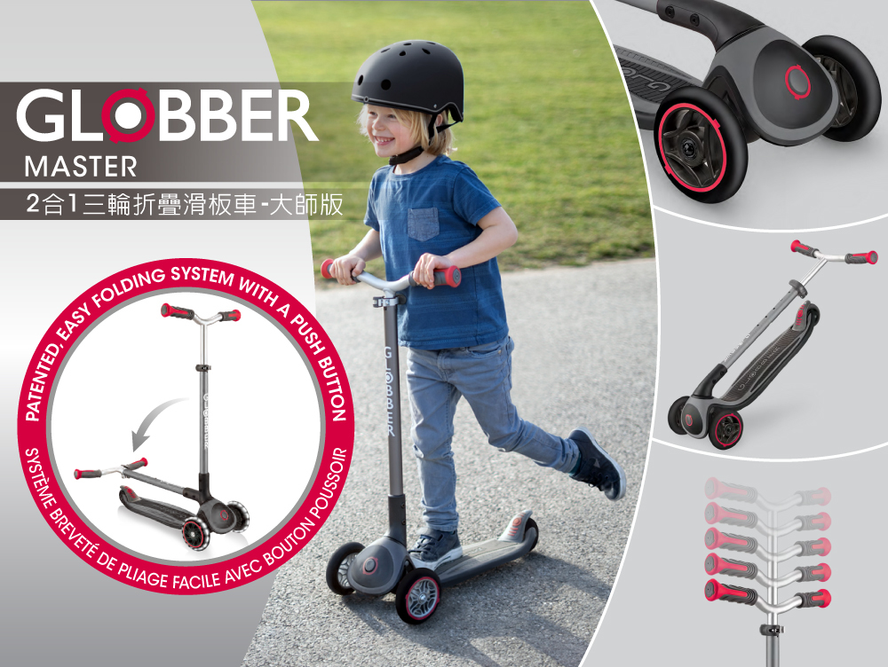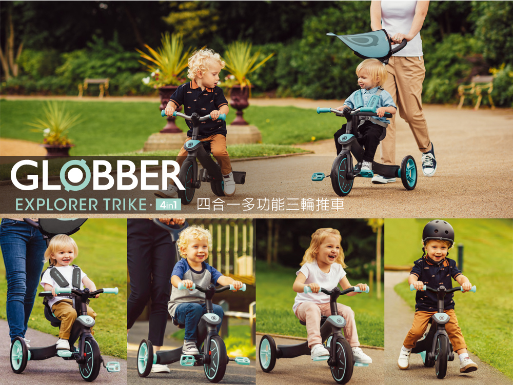 Globber 為幼兒和兒童設計平衡滑步車和三輪車,以及為幼兒、兒童、青少年和成人設計了一系列的三輪車和滑板車,所以適合每個階段年齡的滑板車商品!