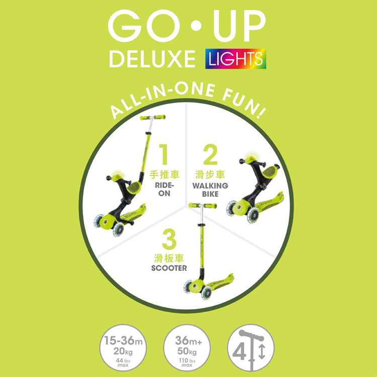 ✩限重:20公斤(滑步車模式);50公斤(滑板車模式)