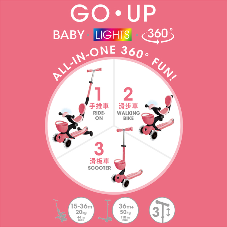 ✩限重:20公斤(滑步車模式);50公斤(滑板車模式)