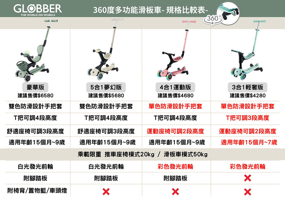 ※規格及重量以實車為準,GLOBBER原廠保留規格變動權利。