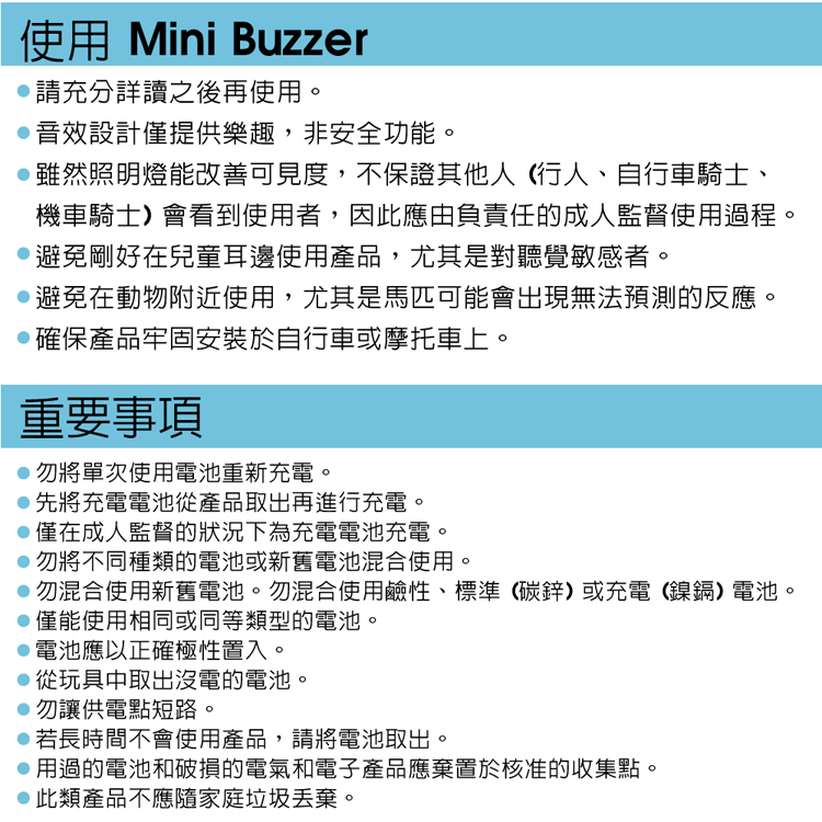 ※請勿混用鹼性,標準(碳鋅)或可充電(鎳鎘)電池。