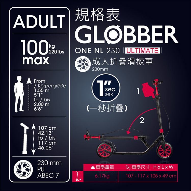 ※規格及重量以實車為準,GLOBBER原廠保留規格變動權利。